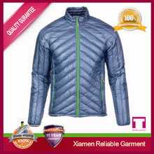 Blue colour long sleeve leather men down jacket