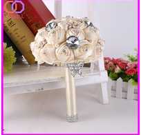 wholesale handmade satin ribbon flower bridal wedding bouquet with crystals