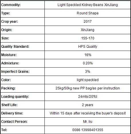 Commodity:        Light Speckled Kidney Beans XinJiang