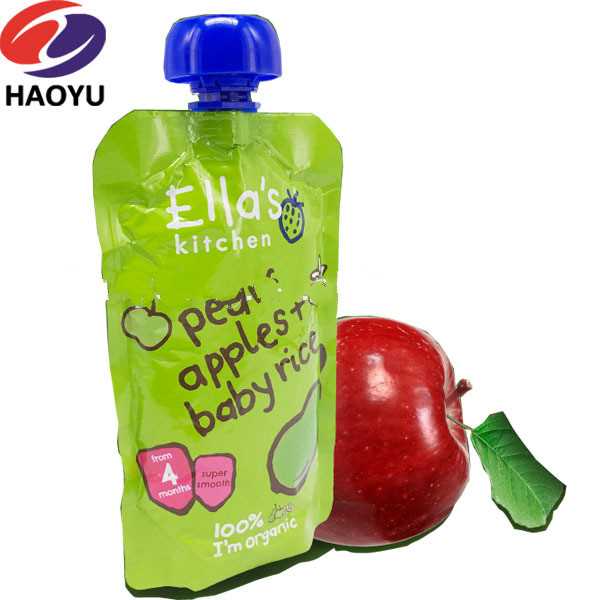 colorful baby food spout pouch with top spout and big screw cap