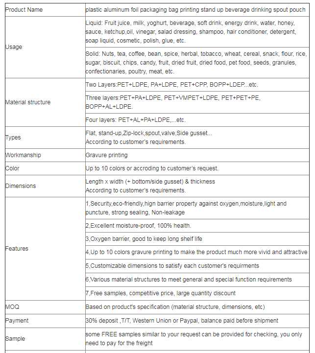 aluminum foil packaging bag printing stand up beverage drinking spout pouch
