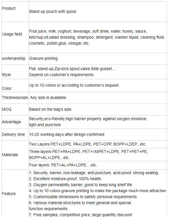 stand up pouch with spout and cap for food grade juice