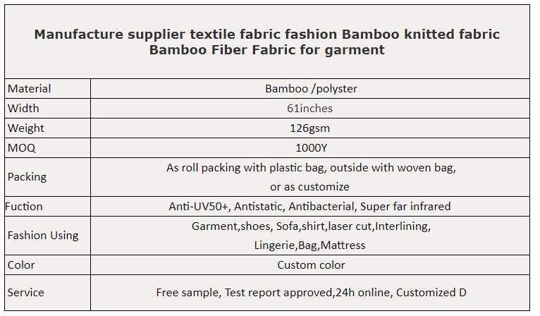 Manufacture supplier textile fabric fashion Bamboo knitted fabric Bamboo Fiber Fabric for garment