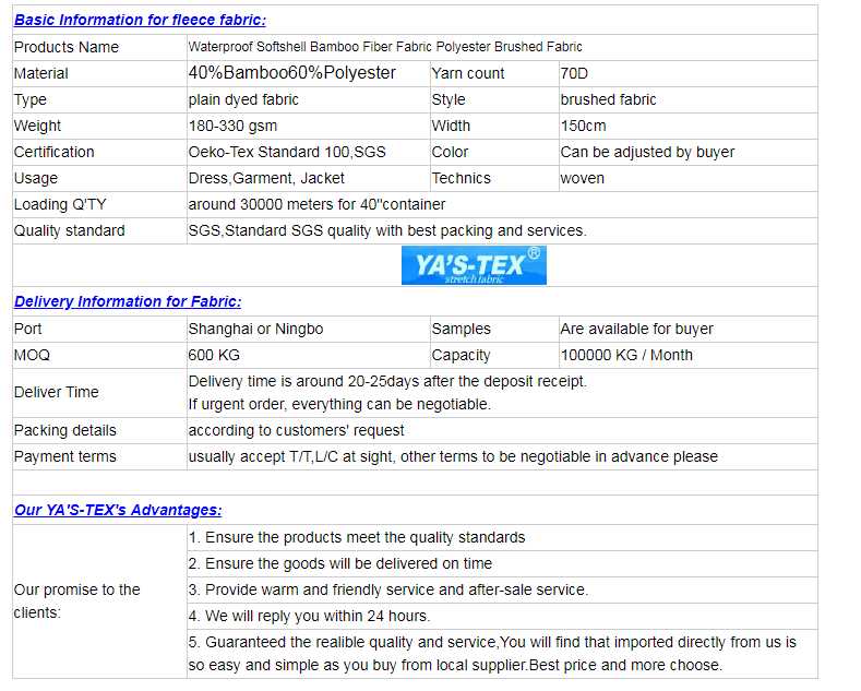 X4036 Waterproof Softshell Bamboo Fiber Fabric Polyester Brushed Fabric