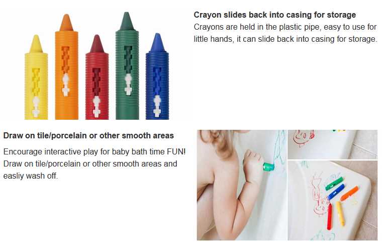 CRB5 5 pack bath crayons non toxic bathtime fun play educational toy