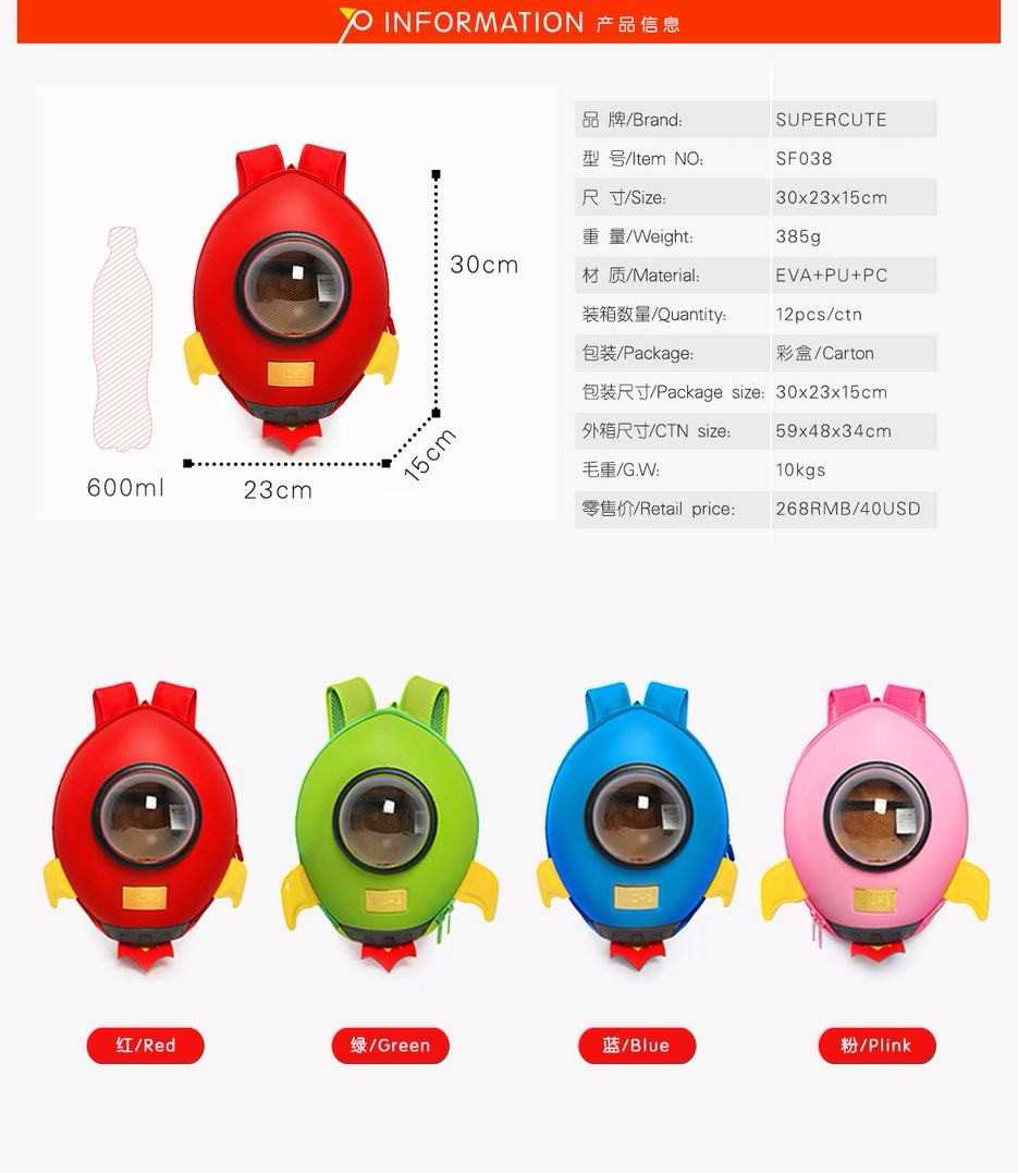 SUPERCUTE blue Rocket shape 3D kids school backpack bag for sale