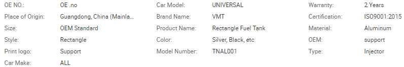 RDS General Purpose Aluminum small aluminum fuel tanks 18 Gallon Rectangle Fuel Tank for sale