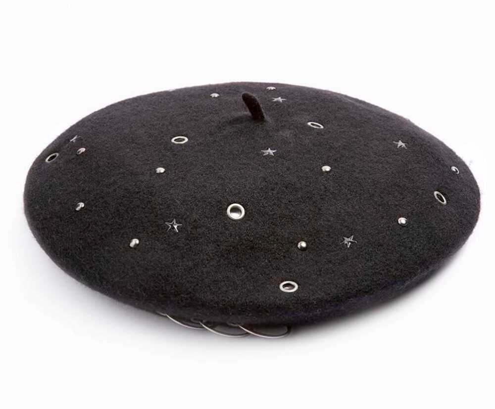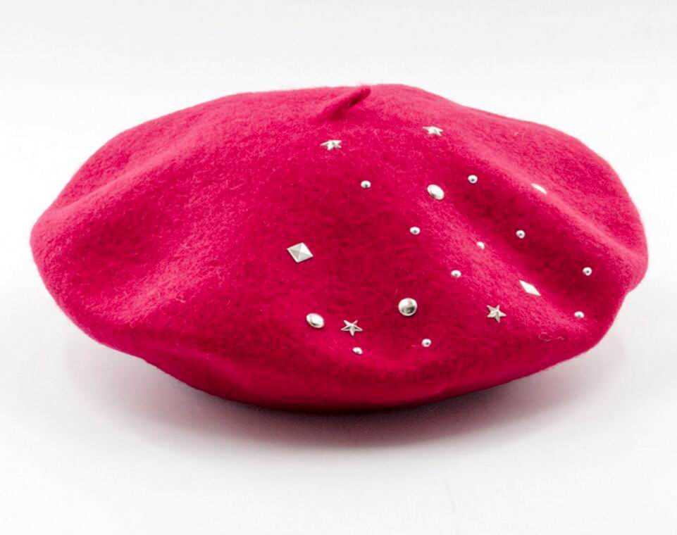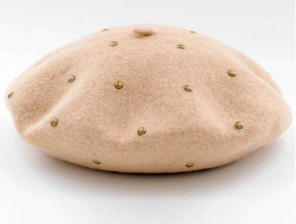 wool studded beret hat