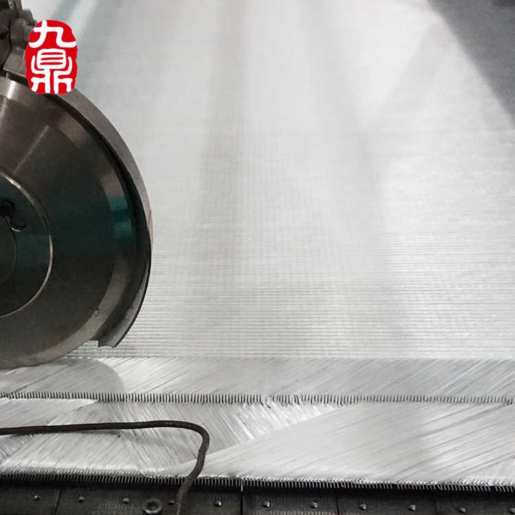 Unidirectional glass fiber fabric is made of alkali-free glass fiber yarn directly with one-way 0 ° or 90 ° in parallel, weaves thread lockstitch with polyester sewing and become, with the glass fiber chopped layer and stitch-bonded nonwoven layer for composite mat.