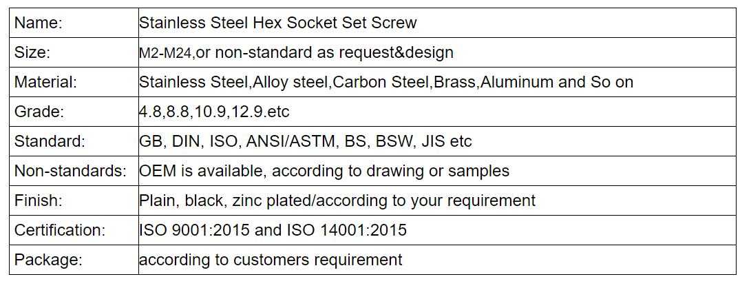Hardware Fasteners Stainless Steel Hex Socket Set Screw high precision Screw sale