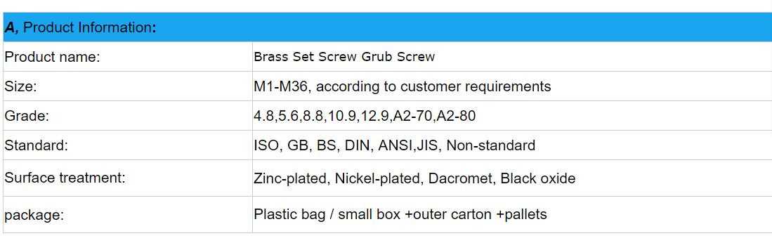 Hardware Fasteners Brass Set Screw Grub Screw sale