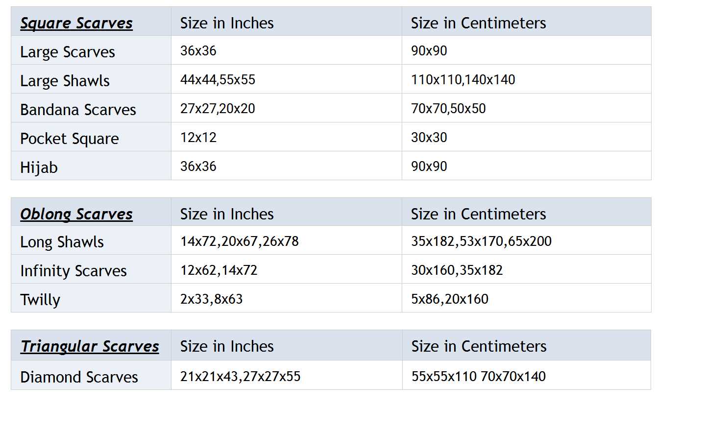 Custom Scarf Sizes