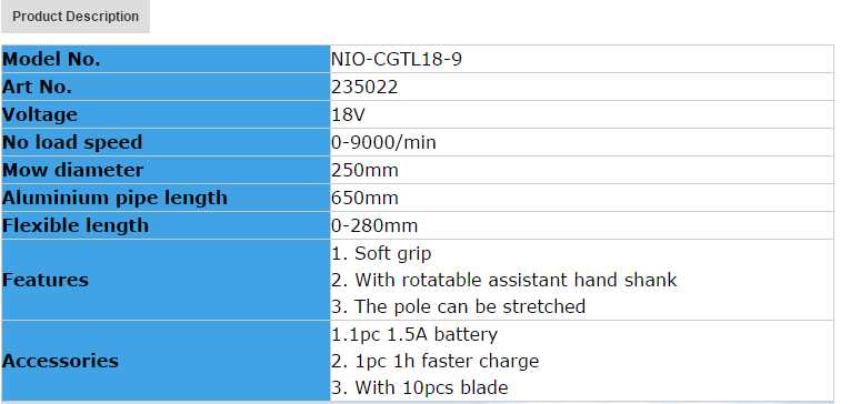 NinONE 18V Li-Ion 10 x Plastic Blades 250mm 1.5Ah Battery Cordless Grass Trimmer for sale