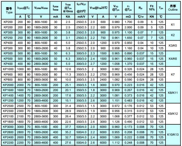 Packaging Details: 6pcs Disc screw ceramic three phase SCR converter thyristor power controller for inverter KP300A-6000A 100V-6500V in one carton box.