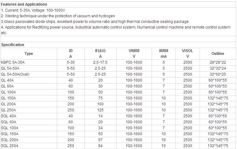 2. Fully pressure welding stnjcture, good temperature characteristics and power cycling ability.