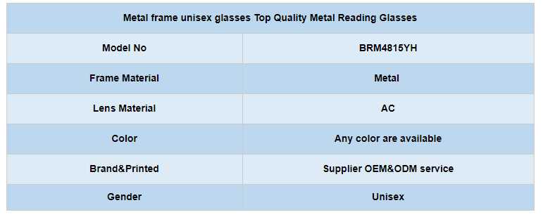 Metal frame unisex glasses Top Quality Metal Reading Glasses for sale