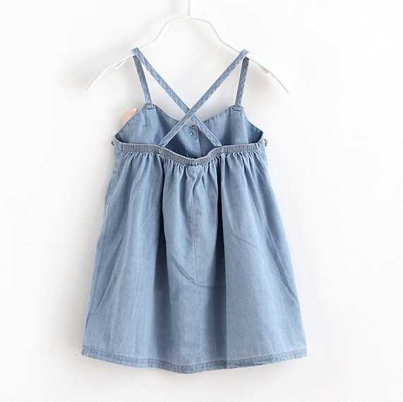 dress with shoulder-straps denim V-neck dress with flower for sale