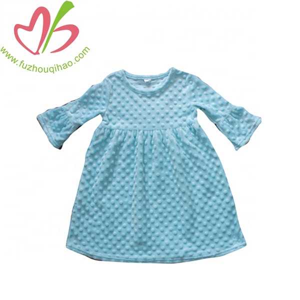 blue minky dot soft hand girl dress fashion boutique princess kids dress with factory price for sale