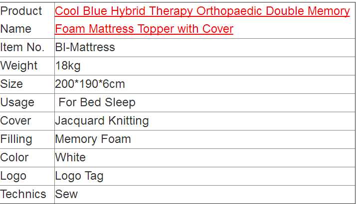 Soft Bed Overlay Pad Therapy Hypoallergenic CoolBlue cooling Cover Egg Single Memory Foam Mattress Topper for sale