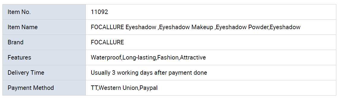 Main Products:FOCALLURE Eyeshadow,FOCALLURE Makeup Powder,FOCALLURE Lipstick,FOCALLURE Foundation,FOCALLURE Blusher