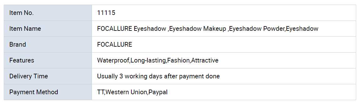 Main Products:FOCALLURE Eyeshadow,FOCALLURE Makeup Powder,FOCALLURE Lipstick,FOCALLURE Foundation,FOCALLURE Blusher