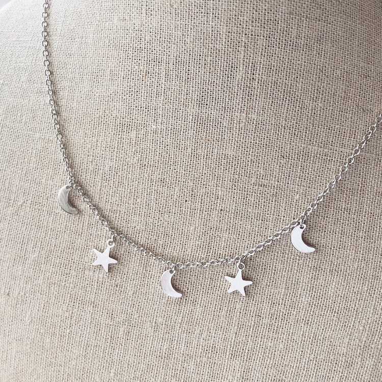 Fashion Gold Plated Moon Star Choker Necklace Woman Choker Necklace Jewelry for sale