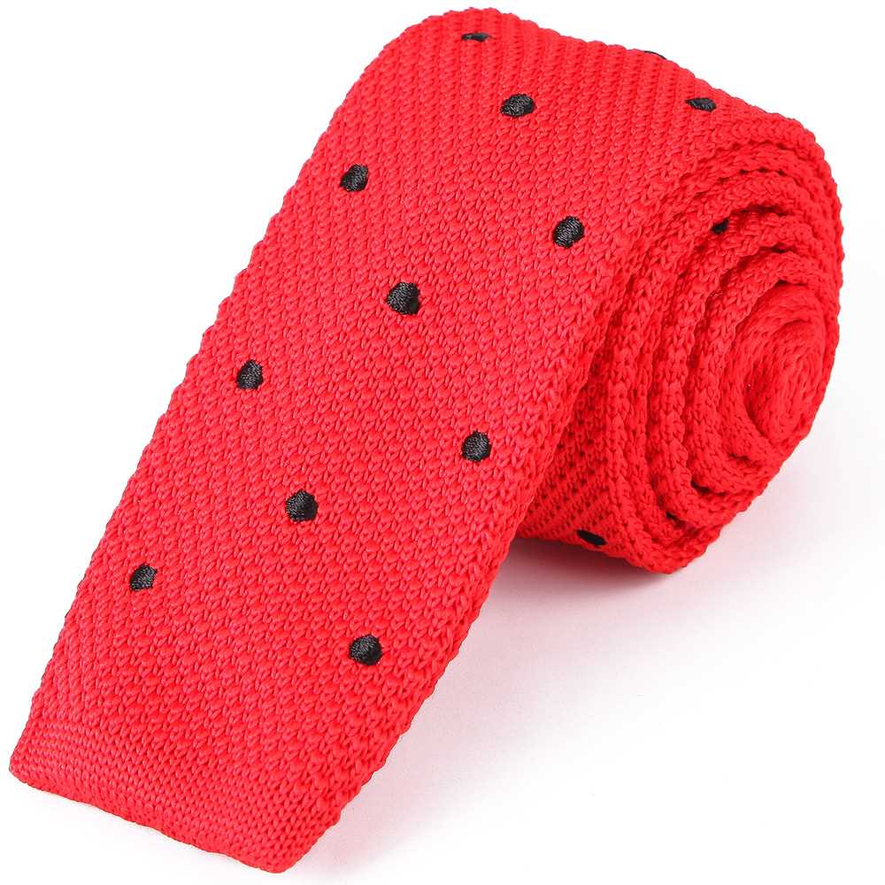 Custom Embroidered Knit Polka Dot Narrow Silm Neckties Skinny Polyester Designer for sale