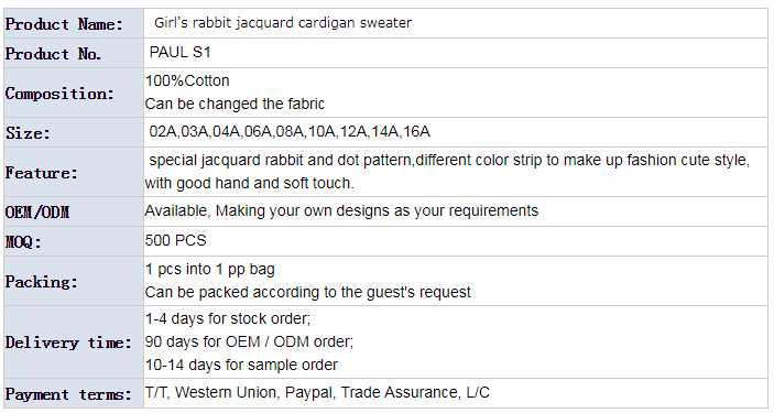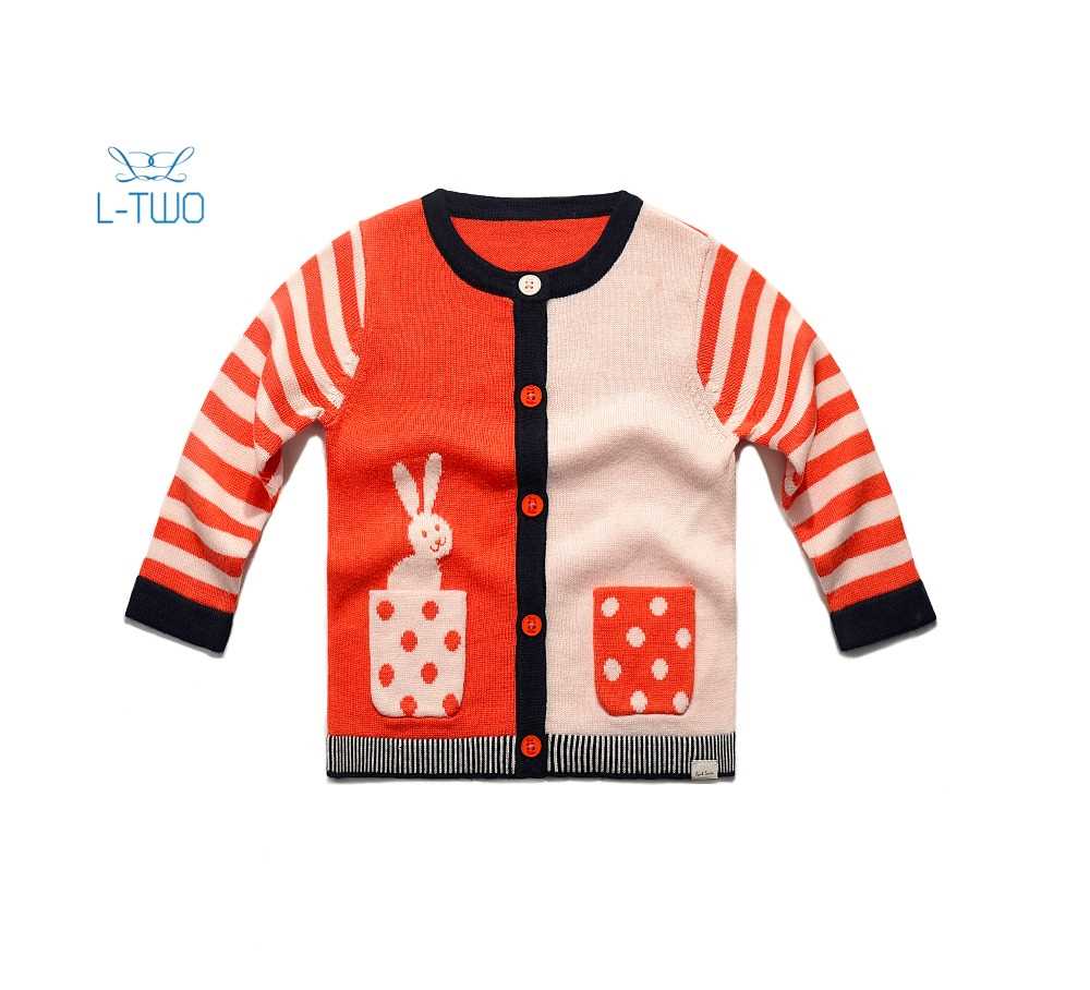 baby sweater/ girl's rabbit jacquard cardigan sweater with two pockets for sale