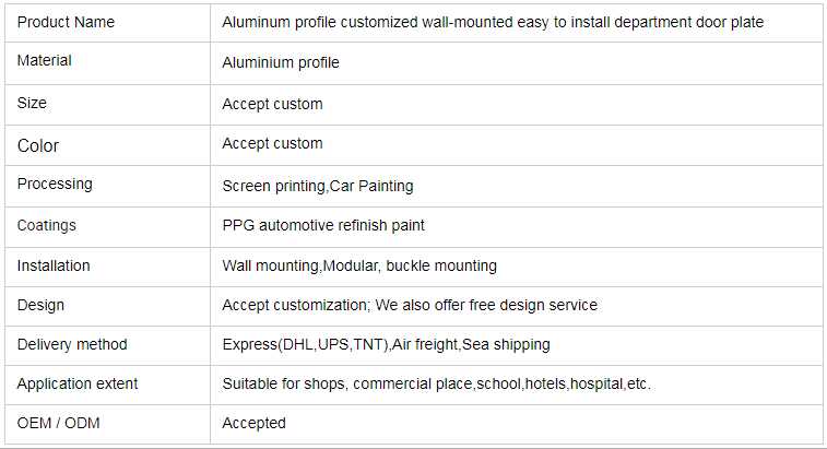 ks0001 Aluminum profile customized wall-mounted easy to install department door plate