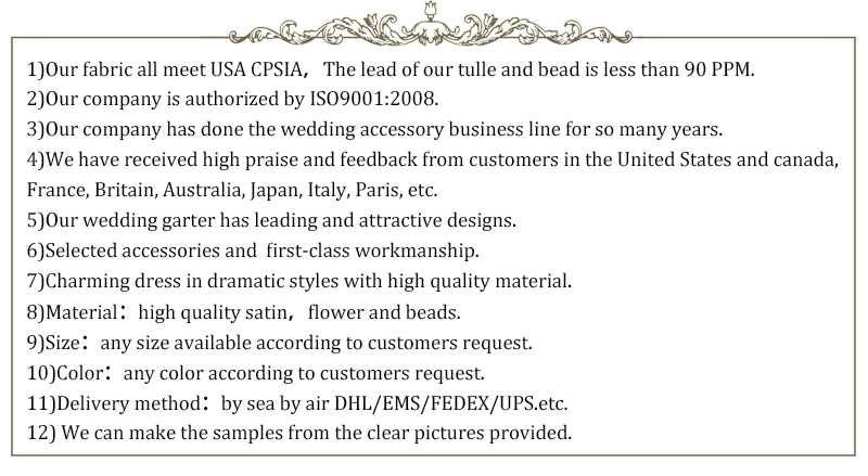 Our products cover a big range of wedding and fashion including Bridal Glove, bridal Veil, bridal Petticoat, wedding Pen Stand, wedding Guest book, bridal Album,bridal Tiara,Bridal headpiece, wedding Garter, bridal Flower Baskets, bridal Purses, bridal Ring Pillow, bridal party girl dress.