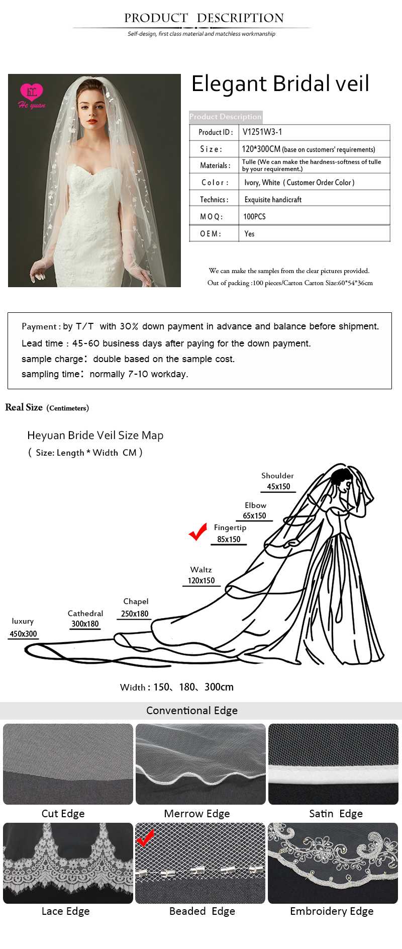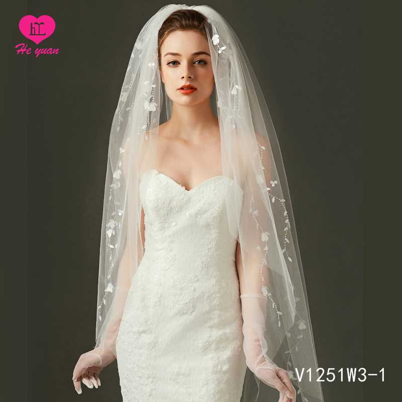 V1251W3-1 Elegant bridal veil Bigger factory hot sale beaded wedding accessories veil on Sale