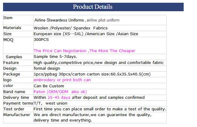 Airline Stewardess Uniforms Packges: Standard Packing Or As You Custom