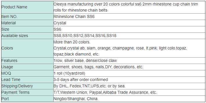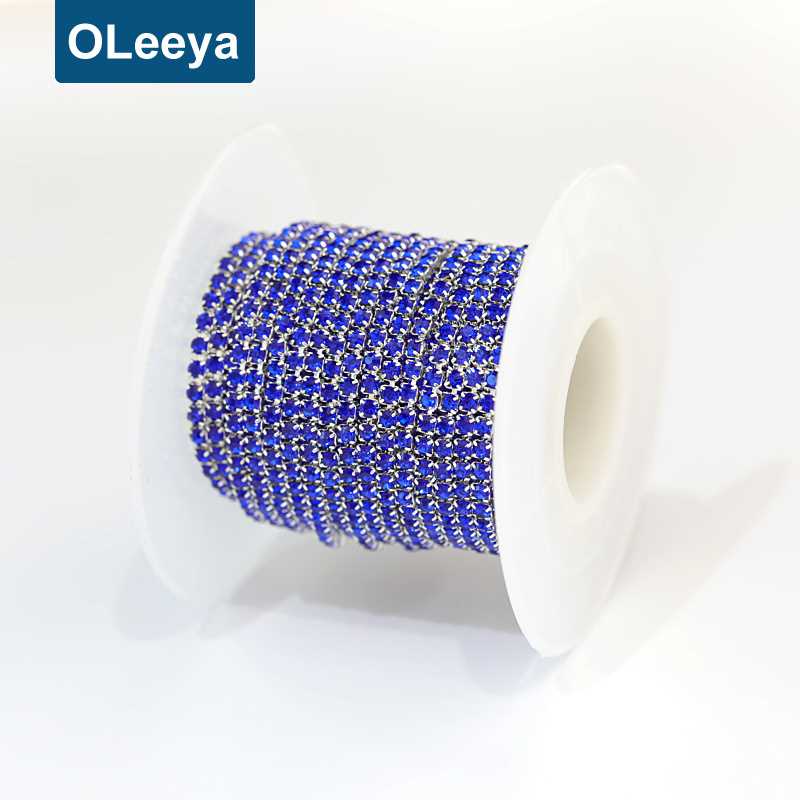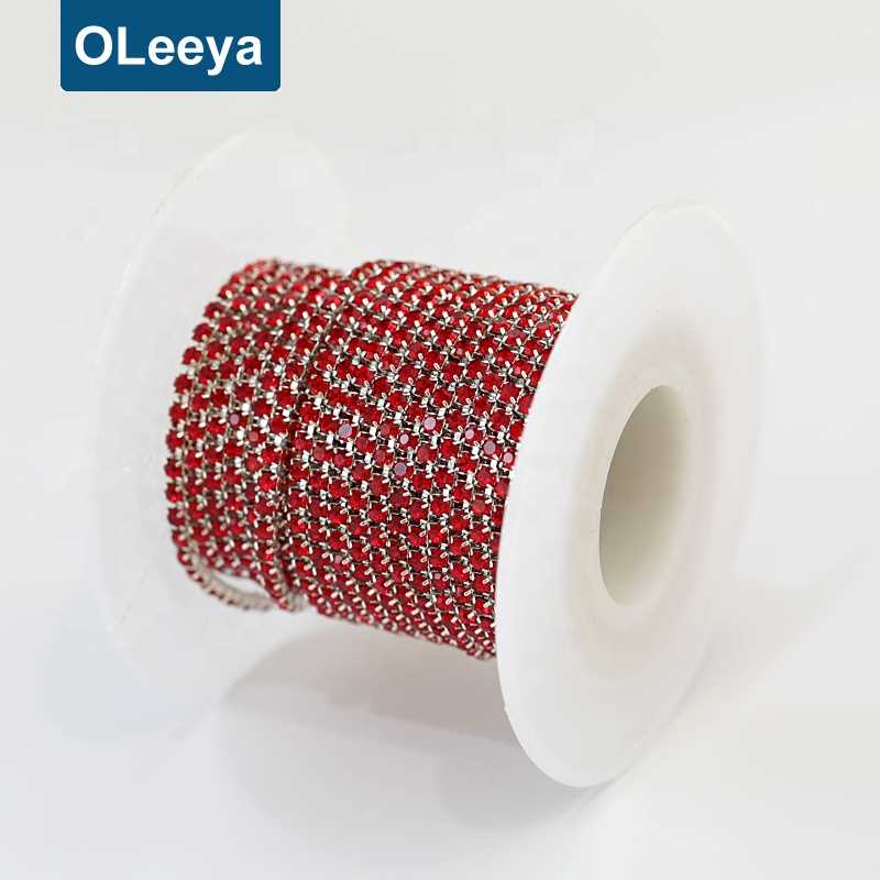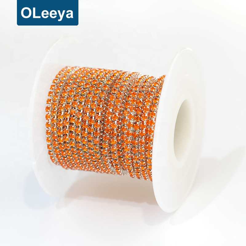 Oleeya manufacturing over 20 colors colorful ss6 2mm rhinestone cup chain trim rolls for rhinestone chain belts sale