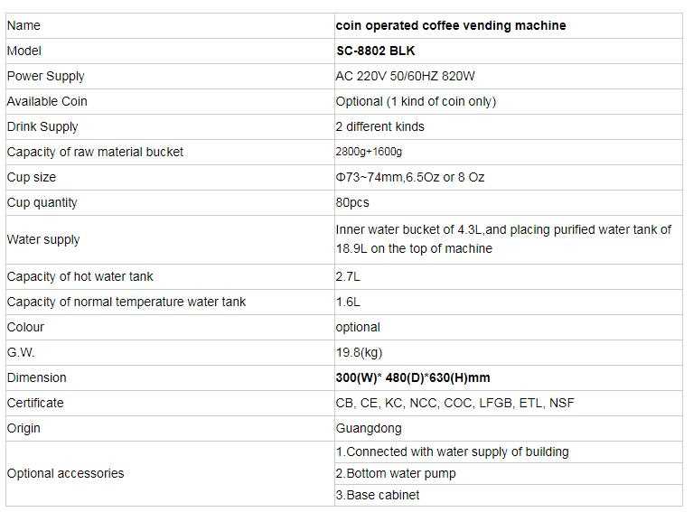 SC-8802 BLK Professional touch screen automatic instant coffee coin operated vending machine for public place