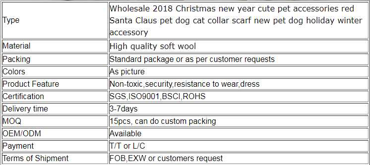 2018 Christmas new year cute pet accessories red Santa Claus pet dog cat collar scarf new pet dog holiday winter accessory