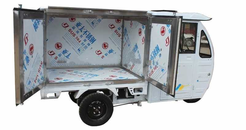 LK1500FBC uses ordinary steel plate, which can only be used to transport ordinary goods. LK1500FBC-1 uses 5cm thick EPS foam insulation board with heat preservation function. Can be used to transport food and cold drinks.