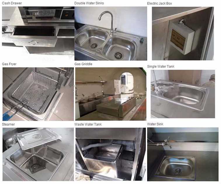 on/off control switch; Double stainless steel sinks with faucet, cold and hot water, freshwater tank and waste water tank