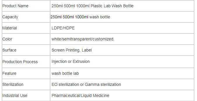 1000ml 500ml 250ml disposable plastic wash bottles for sale