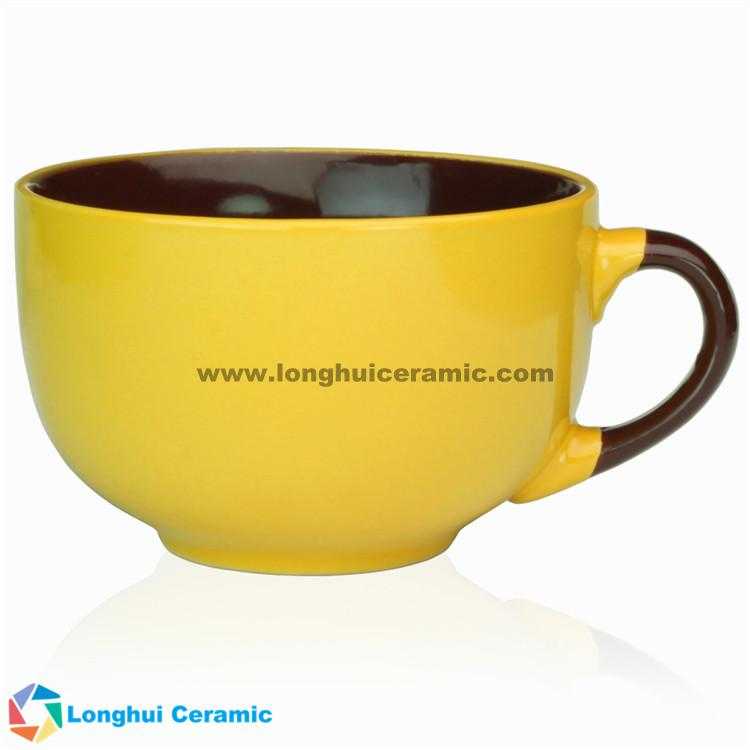 - Product description: Large ceramic cappuccino cup&soup mug, two-tone design, color glaze outside, brown inside and matching handle