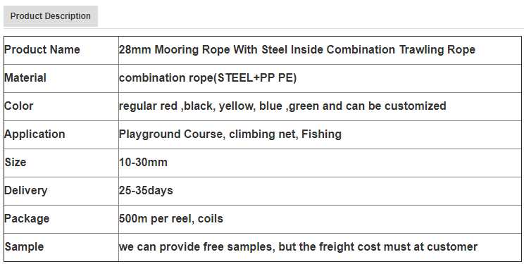 28mm Mooring Rope With Steel Inside Combination Trawling Rope for sale