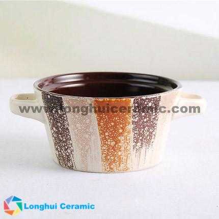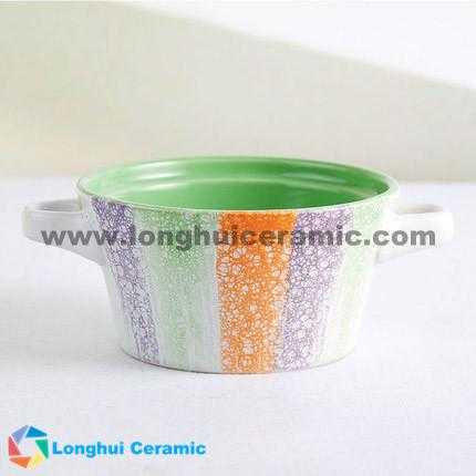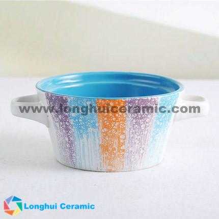 4.8inch Colorful glaze embossed two ears ceramic bowl