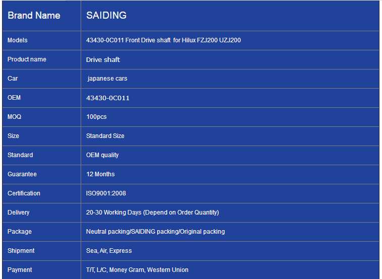 43430-0C011 Front Drive shaft for Hilux FZJ200 UZJ200
