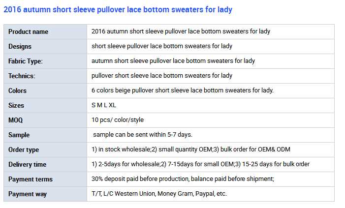 6 colors short sleeve pullover lace bottom sweaters for lady for sale
