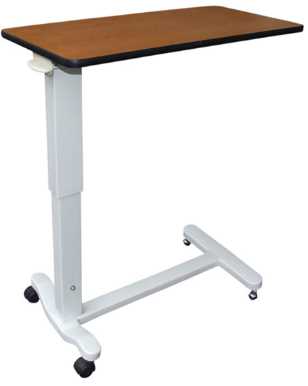 BT-AT004 Wooden top gas spring height adjustable mobile hospital overbed over bed table with castors