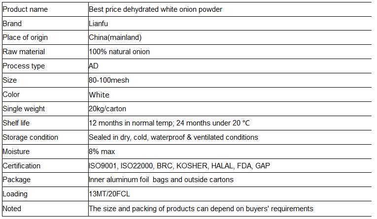 Best price dehydrated white onion powder for sale