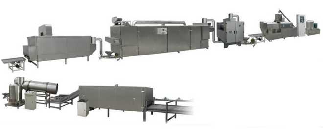 Breakfast Cereal Food is a kind of crispy food which is processed by twin- screw extruder and takes grist as basic material. The majority are fiber flimsy, and either too sugary or too salty. Snacks food processing line can be directly extruded from the extruder, dryer and seasoner, we can produce all kinds of snacks and different shapes by adjusting the dies from extruder.