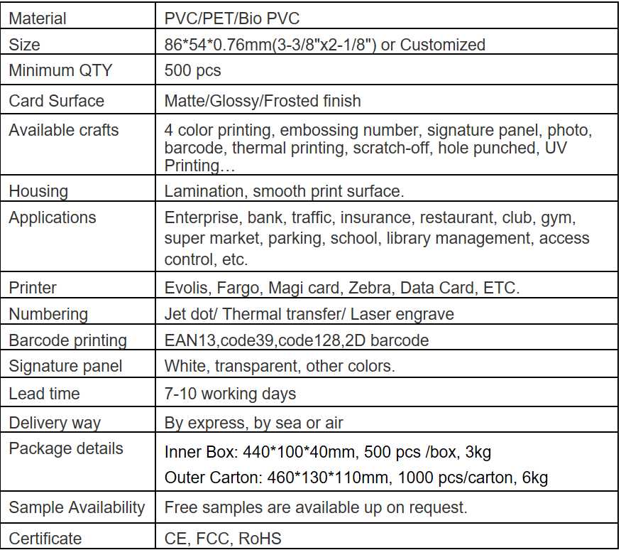 CR80: 86*54*0.76mm (3 3/8*2 1/8”, thickness 30 mil)
