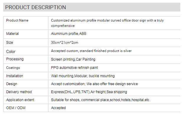 Customized aluminum profile modular curved office door sign with a truly comprehensive for sale