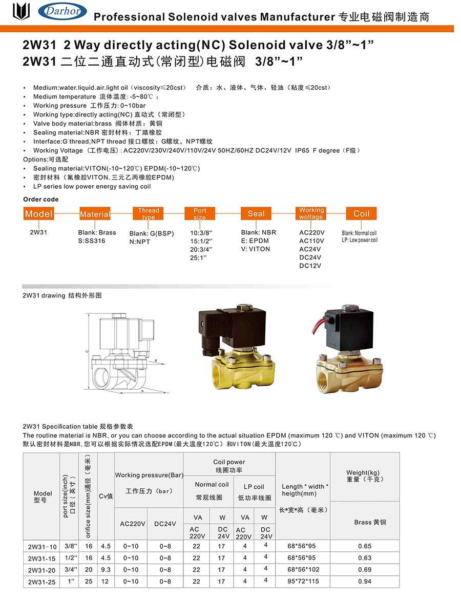 Darhor 2W31 12 24 110 220 240 v solenoid valve with all size manufacturer