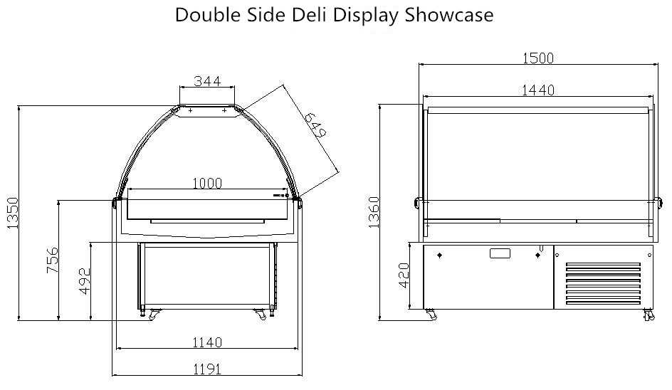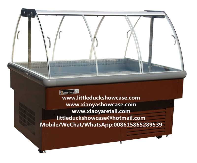 This is double-sided deli display showcase, widely used in supermarket or convenience store, for fresh meat, deli or cooked foods displaying and selling. With double-sided sliding doors, convenient to use. Can be placed in the corridor on both sides.